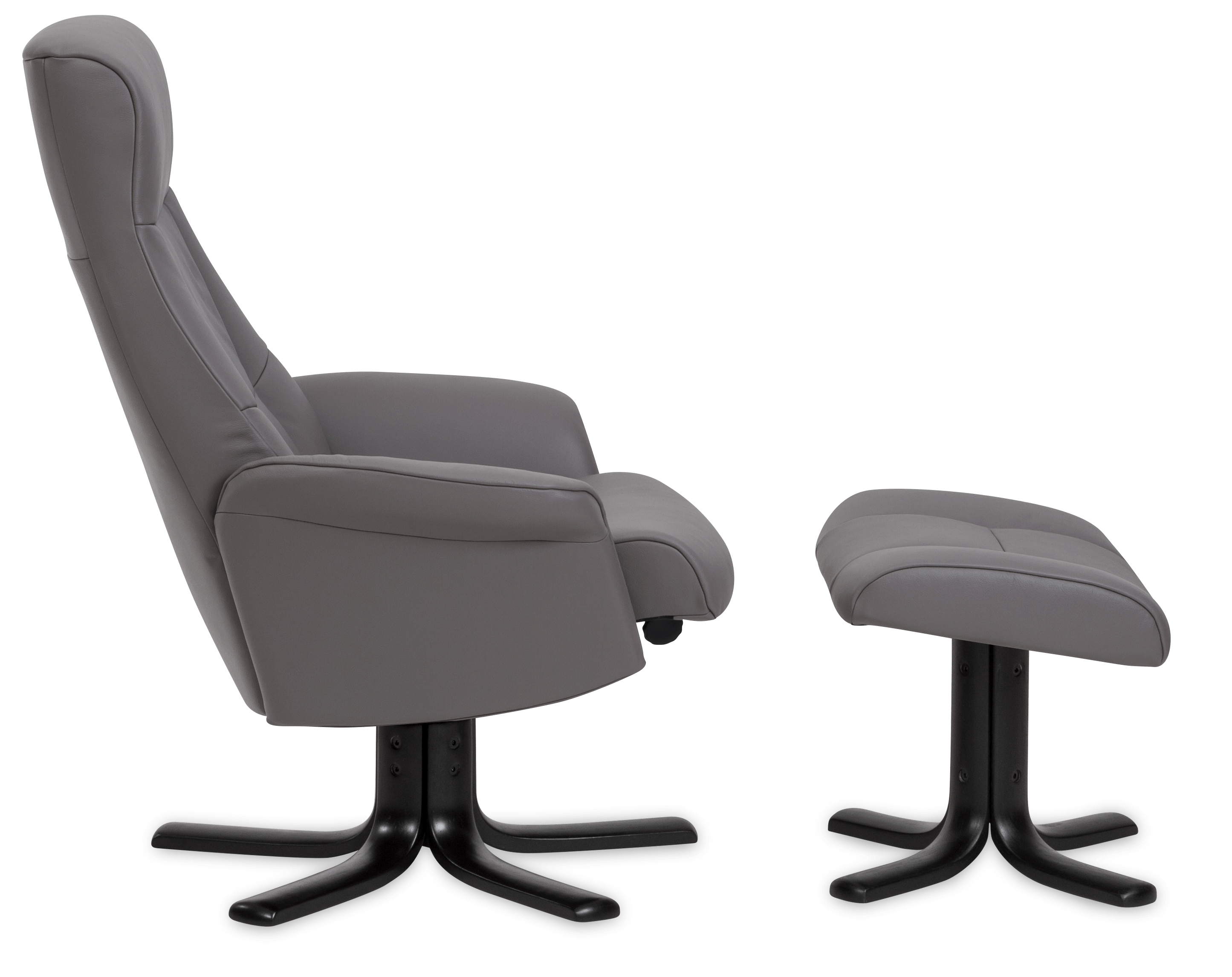 Clean and contemporary, the Scandi recliner is perfectly proportioned to suit small to medium size customers, who are looking for a chair that balances modern Norwegian design with exceptional, lasting quality. Neat and simply styled, the chair has a lightweight and compact silhouette, ideal for a room of all sizes. Finished with a steel star base and complementary steel detailing on the side panels for a look that’s undeniably sleek.