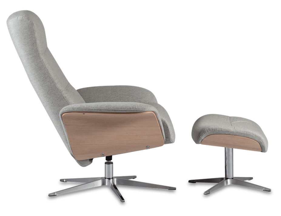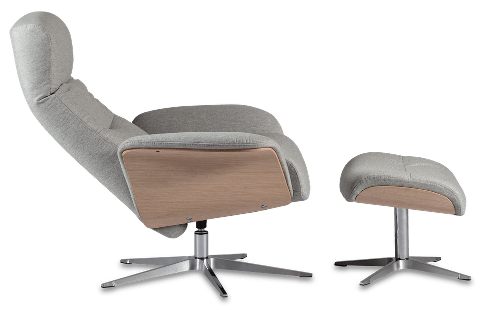 An icon of modern Scandinavian design, the Space recliner has a streamlined silhouette, with slim back and arms - so it’s equally suited to contemporary or timeless interiors. The sleek star base, in steel for lasting strength, comes in a range of finishes so you can tailor the look to your room and it’s effortlessly comfortable too. Simply adjust the angle of the contoured back, headrest and ergonomic footstool to create your perfect place to relax.